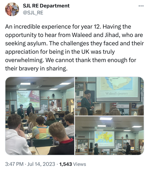 In July we presented sixth formers in Sir John Lawes school with a rare educational experience given by two asylum seekers in their school. The young men spoke about their reasons for leaving home and their ordeals as they travelled to the UK. They also elaborated on some of the challenges with accommodation and daily life with the uncertainty of whether they will be allowed to stay in our country.